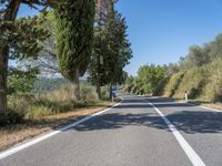 This stock photo depicts a man walking down a picturesque tree lined road in the beautiful region of Tuscany, Italy. The road is made of smooth asphalt and stretches straight ahead. The landscape is breathtaking, with tall trees on both sides creating a natural canopy. It is a peaceful and serene rural scene, with clear blue sky above. The rugged beauty of Tuscany is well represented in this image, showcasing the charm and allure of this iconic Italian region. The scene resembles a garden, with cypress trees adding a touch of elegance to the surroundings. This photo captures the essence of the European countryside and provides a sense of tranquility and harmony with nature.