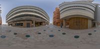 A stunning architectural reflection in Abu Dhabi, United Arab Emirates. The circular shape captures multiple buildings in one frame, with a unique perspective of the city's urban infrastructure.