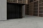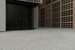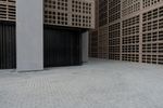 two buildings and two circular mirrors that appear to be made out of large blocks and stone blocks