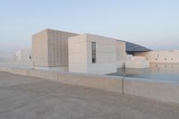 A stunning architectural marvel in Abu Dhabi, United Arab Emirates. The Louvre stands tall against a clear sky, with its modern facade and unique design. The urban landscape surrounding it is a mix of open spaces, concrete buildings, and asphalt roads.