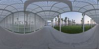 Abu Dhabi's Tourist Attraction: Walkway with Palm Trees at the Louvre