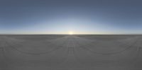 A stunning aerial view of an open space in Europe, with the sun shining brightly in the clear sky. A long, narrow thread-like structure adds an artistic touch to the landscape. Nature's beauty at dawn.