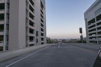 Aerial view of Los Angeles, California, USA at dawn. Modern architecture and high-rise buildings define the metropolitan area. Straight road leads to the city's business district. Clear sky and motion blur convey the energy of city life.