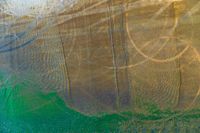 abstracted photo of a horse and a dog in the mud with a green sky behind them