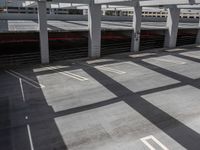 Aerial view of Miami Beach, Florida. The city's urban design and open spaces are highlighted by the concrete surfaces. The high position provides a top-down perspective, revealing the organized parking lots and vibrant city life.