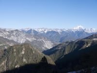 This stunning photograph captures the breathtaking view of the mountains in Shangri-La, China. The landscape features a mountain range, with cable car tracks and cable visible from the top of a mountain. The image showcases the natural beauty of the highland, with hills, fields, and wilderness stretching as far as the eye can see. The clear sky and fluffy clouds add a touch of serenity to the scene. It is a perfect representation of the rural and agricultural beauty found in Yunnan, Asia. Discover the majesty of the Alps-like massif, valleys, and cliffs, creating a captivating winter scenery. This image is an excellent choice for any nature-related project, travel blog, or inspirational design.