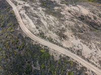 Aerial view of Portugal, capturing elevated mountainous terrain. The landscape reveals diverse dirt and gravel surfaces. A top-down perspective highlights Europe's natural beauty during the day.