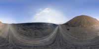 a photograph taken at an overlook in the sand and sky with a full circle lens to allow