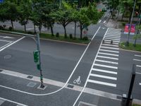 Aerial view of Taipei City intersection with trees and crosswalks