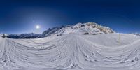 3d snow - covered slope looking over an aerial view at a mountain and two airplanes passing over