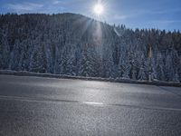 A picturesque landscape in the Alps of Switzerland. Snow-covered mountains and woody plants are surrounded by a winter wonderland. Sunlight creates a stunning profile against the clear blue sky.