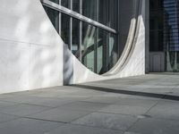 This image showcases the modern architecture and urban design of Berlin, Germany. The city's business district is characterized by sleek and concrete office buildings with glass facades. The white concrete structures create a sharp contrast against the clear blue sky. The image captures the lines, shadows, and reflections of the buildings, highlighting their unique structural elements. The open spaces and tiled roads are a key feature of the urban landscape. This photo represents the dynamic city life and the material properties of the architecture. It provides a visual depiction of Europe's urban design.