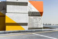 This stock photo showcases a stunning architectural structure in Dubai, United Arab Emirates. The building's facade is made of yellow concrete, with a sleek and modern design. The structure stands tall against a clear sky, giving a sense of openness and urbanity. The surrounding area features an asphalt road surface and a parking lot. The image captures the blend of infrastructure and open spaces in this vibrant city.