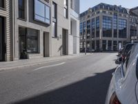 This stock photo showcases the stunning modern architecture of Berlin, Germany. The photo captures a beautiful city street with little bumps on the road, highlighting the vibrant and residential neighborhood of Berlin. The mixed-use buildings and contemporary design of the buildings add to the charm of this European city. The monochrome image emphasizes the intricate facade details and the sleek lines of the buildings. The clear sky and the sun casting shadows create a captivating atmosphere. The glass windows and reflections add a touch of urban sophistication. This photo is perfect for articles on city life, architecture, and urban planning.