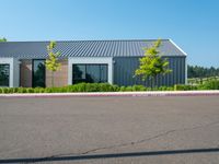 This is an image of a residential area with a modern architectural design. The building features a rectangular facade and is surrounded by lush vegetation. The road surface is made of asphalt, providing a smooth and sleek look. The property is located in an urban area, with trees providing shade in the public space. The architecture and design of the building make it a standout fixture in the real estate market. This photo captures the beauty of urban design and showcases the land lot where the property is situated.