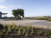 This stock photo showcases a modern residential property in the vibrant city of Los Angeles, California, USA. The architecture is sleek and contemporary, with a combination of asphalt and dirt road leading up to the house. The spacious yard features well-maintained grass and trees, creating a serene and inviting landscape. The house is situated in a suburban area, surrounded by fields and vegetation. The clear sky and natural environment enhance the beauty of this Hinterhof. Overall, this image conveys a sense of tranquility and luxury, making it perfect for various projects related to real estate, architecture, or urban living.