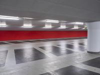 This image showcases the architecture in Berlin, Germany. The photo captures a parking lot with red floor tiles and columns. The concrete surface glistens under the artificial light, creating a stunning visual. The open space and the line of parking decks along the road contribute to the urban atmosphere of Berlin. The photo represents the modern and vibrant cityscape of Germany's capital. It showcases the intersection of design, functionality, and urban infrastructure. This image can be used to represent urban development, architecture, and city planning.