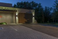 This stock photo features a stunning view of a modern residential building in Toronto during the early hours of dawn. The building's architecture boasts a sleek facade made of composite materials, with ample lighting shining through the floor-to-ceiling windows. The surrounding landscape is adorned with a variety of trees and vegetation, creating a pleasant residential area. The well-maintained parking lot and asphalt road surface blend seamlessly into the scene. The clear sky and artificial lights add a touch of serenity to the image, making it ideal for real estate, property, and business-related designs or articles.
