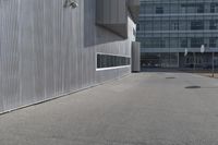 This stock photo showcases the modern architecture of an office building in Toronto's bustling business district. The sleek facade of the building is made of composite material and features large windows that allow for plenty of natural light. The straight road in front of the building is made of grey asphalt and provides a sense of urban design. The open space and the low, rectangular shape of the building contribute to a contemporary and stylish aesthetic. The image captures the atmosphere of a typical workday in the city, with people going about their business.