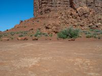 Off-road track in Monument Valley, Arizona. Dirt and gravel roads snake through the open space landscape. Clear skies highlight the natural beauty of USA's southwest. A picturesque day in Utah's rugged terrain.