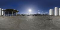 Industrial manufacturing factory in Asia, on the North Island of New Zealand. Concrete surfaces and asphalt roads dominate the vast open space. Clear skies overlook the vegetation surrounding the factory.