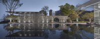 Asian Reflecting Pool with Large Building and Trees
