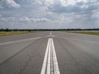 This is an image taken in Berlin, Germany. It shows a straight road extending into the distance, with open fields and vegetation on either side. The clear sky and clouds provide a backdrop to the landscape. The road surface is made of asphalt and tar, creating a smooth thoroughfare for recreational activities. In the background, there is an airport, which is a significant feature of this location. This photo captures the beauty of the Berlin landscape and showcases the open spaces and recreational opportunities available in the area.