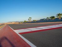 A race track in the USA with clear skies overhead. The asphalt road provides a smooth surface for high-speed racing. The low foreground adds depth to the image, capturing the excitement of race day.