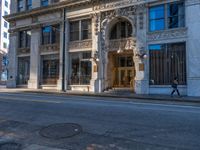 Classic architecture and urban design in Atlanta, Georgia. City life thrives in the USA, with bustling streets and vibrant storefronts. Hard shadows cast on asphalt roads under the bright daytime sun.