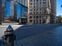 Urban street in Atlanta, Georgia, showcasing classic and modern architecture. Clear sky casts hard shadows on the asphalt road. City life buzzes with restaurants, shops, and storefronts under the one-quarter shadow coverage.