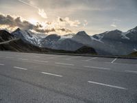 Austria's breathtaking landscape at dawn. The car is parked along the side of the road, providing an overlook of the snow-covered mountains. Clear skies and open space create a serene and picturesque view of nature in Europe.