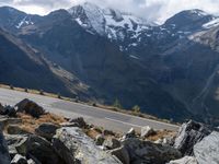This is a scenic image of an asphalt road in Austria. Against the backdrop of majestic mountains, the clear sky adds to the beauty of the landscape. A person stands on the road, creating a sense of scale and adventure. This photo captures the natural beauty of Austria and its stunning mountainous regions. It represents a typical day in the European country, where people can enjoy the breathtaking scenery and explore the picturesque roads that wind through nature.