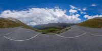 the view of a winding mountain pass is a beautiful scene in this fish - eye