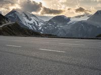 This scenic image captures the beauty of a mountain landscape in Austria. The view showcases snow-covered mountains in the background, with a car parked on an empty parking lot in the foreground. The asphalt road leads into the open space, providing an overview of the majestic nature. The clear sky enhances the breathtaking view, making it a perfect scene during the dawn. This photo represents the tranquility and awe-inspiring vistas that can be experienced in the European landscape of Austria.