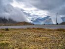 Austria's dramatic landscape showcased in this image of a long gravel road winding through the mountains. The large cloud adds a touch of drama to the scene. Explore Europe's natural environment.