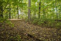 Autumn Forest Path: A Lush Landscape of Leaf-Covered Ground