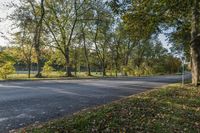 This image captures a scenic view of a suburban road in Ontario, Canada. Surrounded by lush vegetation, the road is lined with trees displaying vibrant autumn colors. The sunlight shines through the branches and leaves, casting a beautiful shade on the road surface. This public space provides a recreational area for residents to enjoy nature. The clear sky above adds to the serene atmosphere of the scene. Located in the outskirts of Toronto, this road offers a tranquil escape from the bustling city life.