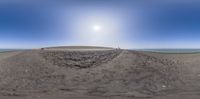 a 360 - view of a lighthouse in the middle of a sandy area with some vegetation