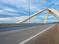 The Prat Bridge in Barcelona, Spain, stands as a modern masterpiece of architecture. Its sleek design and smooth asphalt make it a prominent landmark in Europe. This photo captures the bridge on a cloudless day, emphasizing its low profile.