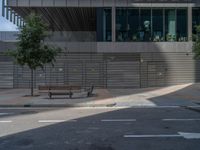A modern profile of Barcelona's business district. The city's urban design is highlighted by the sleek architecture and office buildings. Hard shadows and asphalt roads add to the urban vibe.