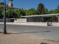 A clear sky frames the modern architecture of Barcelona's roads and urban landscape. The city's iconic museums stand tall against the backdrop of Europe's bustling streets. A vibrant day in Spain.
