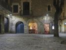 Barcelona at Night: Stone Building with Gothic Arches
