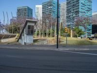 A sunny day in the vibrant city of Barcelona, Spain. Modern architecture and urban design are showcased in the residential areas, with clear skies casting hard shadows on the asphalt roads. An iconic cityscape in Europe.