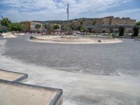 An urban plaza in Barcelona's business district showcases modern architecture and open spaces. The city's vibrant energy is felt as skateboarders glide through the sleek surfaces. A perfect day in the heart of Europe.