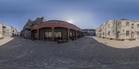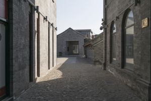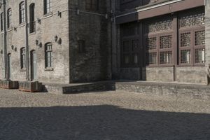 A view of the historic architecture in Beijing's old town. Classic brick walls and stone facades line the streets. Cobblestone alleyways lead to charming courtyards and town squares. The urban landscape showcases the rich heritage of China's capital city.