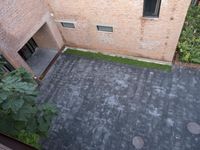 A high-rise residential building in Beijing, China. The modern architecture features a brick facade and large windows. The building is surrounded by open spaces, including a courtyard and backyard. Located in the 798 Art Zone, a vibrant art district in Asia.