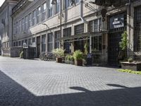 A classic architecture building in Berlin, Germany. The mixed-use property features a cobblestone courtyard and a loading dock. The urban design blends seamlessly with the vibrant city life of this European art district.