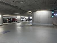 An urban cityscape in Berlin, Germany. The concrete architecture blends with the city's bustling streets and parking lots. Public spaces are illuminated by artificial light, creating a vibrant atmosphere.