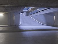 This stock photo features a stunning night view of Berlin cityscape. The city comes alive with its beautiful architecture and well-lit concrete streets. The image captures the metropolitan area, showcasing the urban feel of the city. In the foreground, there is a road with lines and a parking lot, while in the background, you can see a subway station and a highway ramp. The artificial lights create a mesmerizing visual effect, emphasizing the vibrant atmosphere of the city at night.