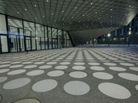 This image showcases the modern architecture of Berlin, Germany. The photo captures the dawn light illuminating the unique design of the building. The open space showcases a combination of lines, patterns, and circles, creating a visually stunning lobby. The flooring and ceiling exhibit a futuristic design, representing the cutting-edge architecture of Europe. This photo represents one of the many architectural wonders in Berlin, a city known for its innovative and avant-garde designs. Experience the mesmerizing beauty of Berlin's futuristic architecture at the Futurium, a symbol of European design excellence.